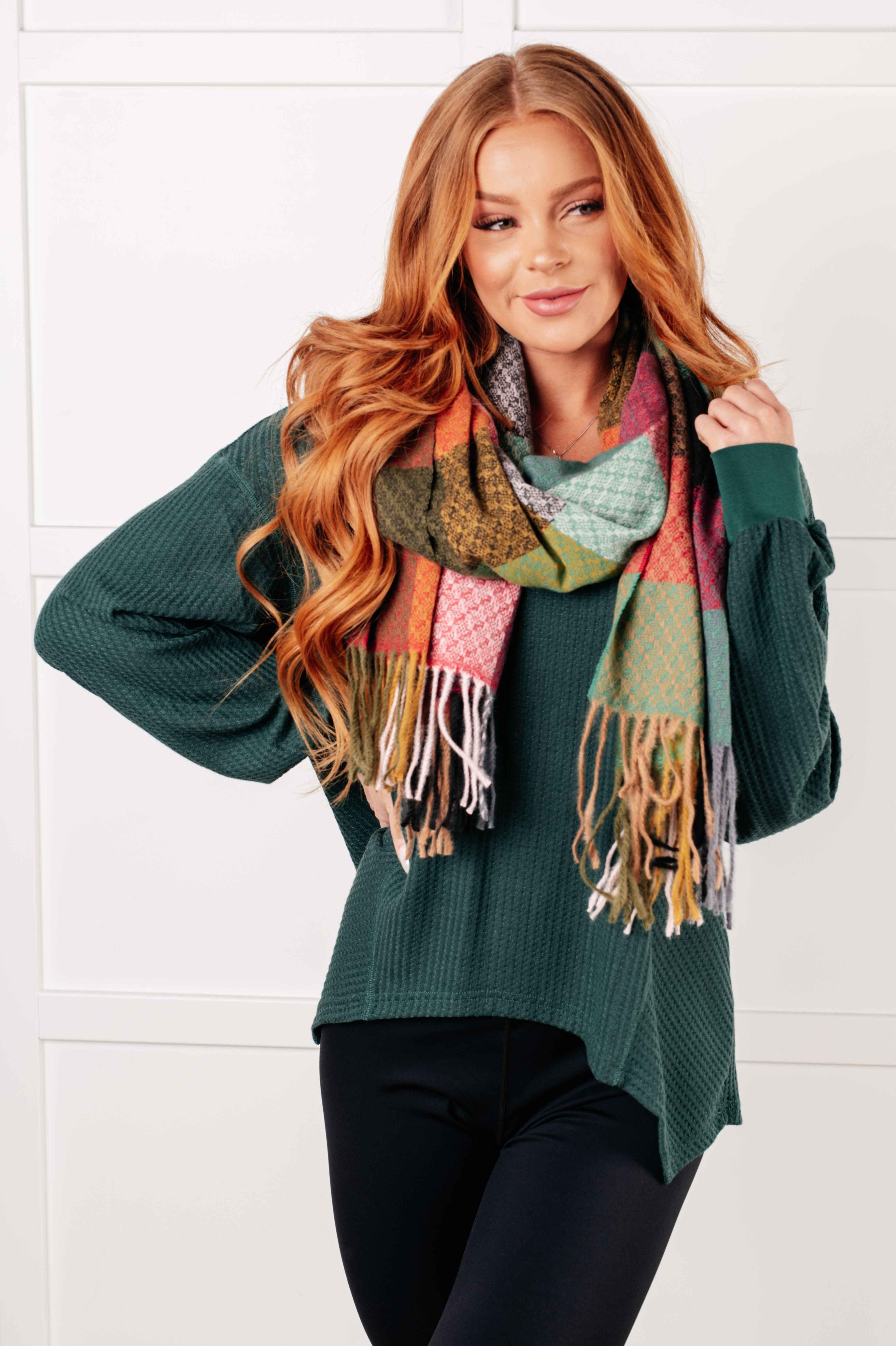 Keep Me Cozy Checkered Fringe Scarf in Berry