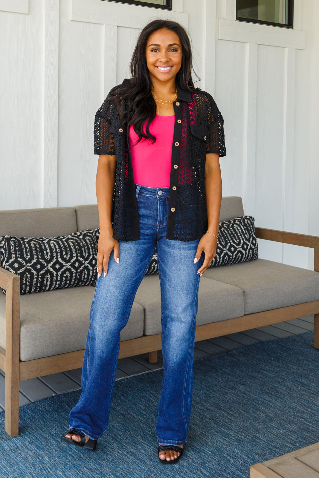 Discover the perfect boho chic look with the Talk of the Town Lace Set. Crafted with crotched lace, it features a button up boxy fit top with contrast button. The matching shorts have an elastic waistband, pockets, and come fully line. This ultra-feminine set is sure to make a statement.