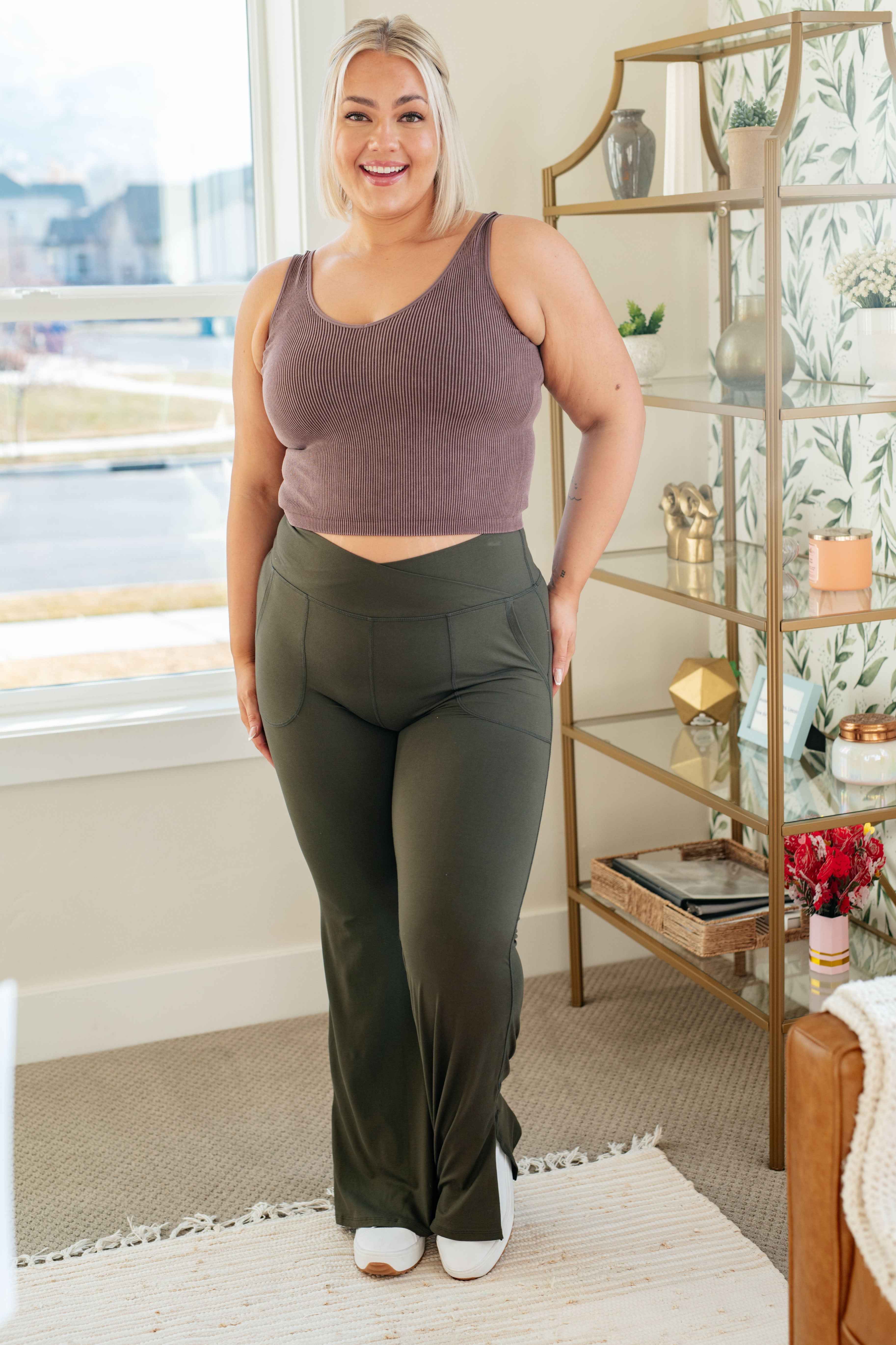 On the Move V Front Flare Leggings in Olive