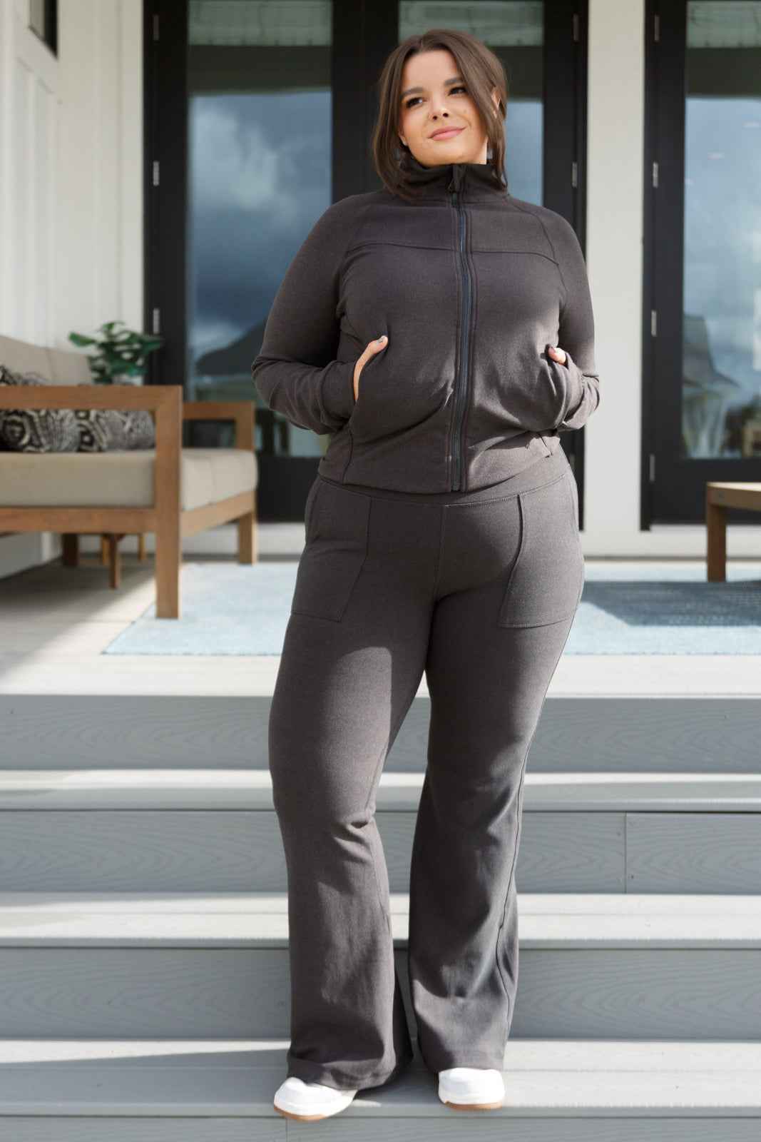 Our Where Are You Zip Up Jacket is perfect for adding a stylish, cozy layer to any outfit. The mock neckline and zip front ensure a flattering, comfortable fit. Zip pockets and a gathered back add convenience, while cuffed sleeve and a wide hem provide a modern look. With a cropped length, you can easily pair it with our Wear Are You Flared Leggings for the ultimate look.