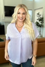 Pleat Front V-Neck Top in Lavender - Large is backordered and will ship as soon as it is back in stock.