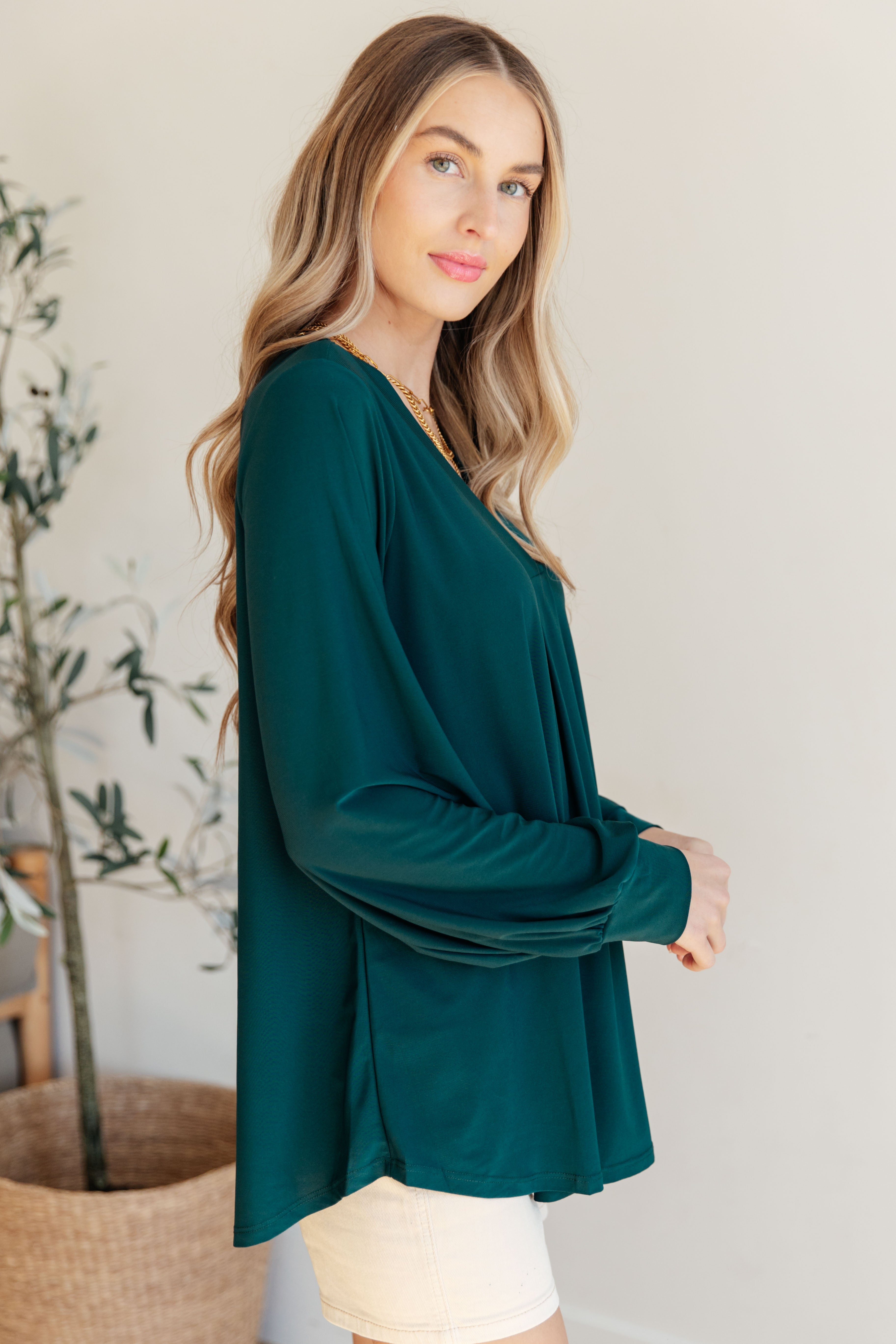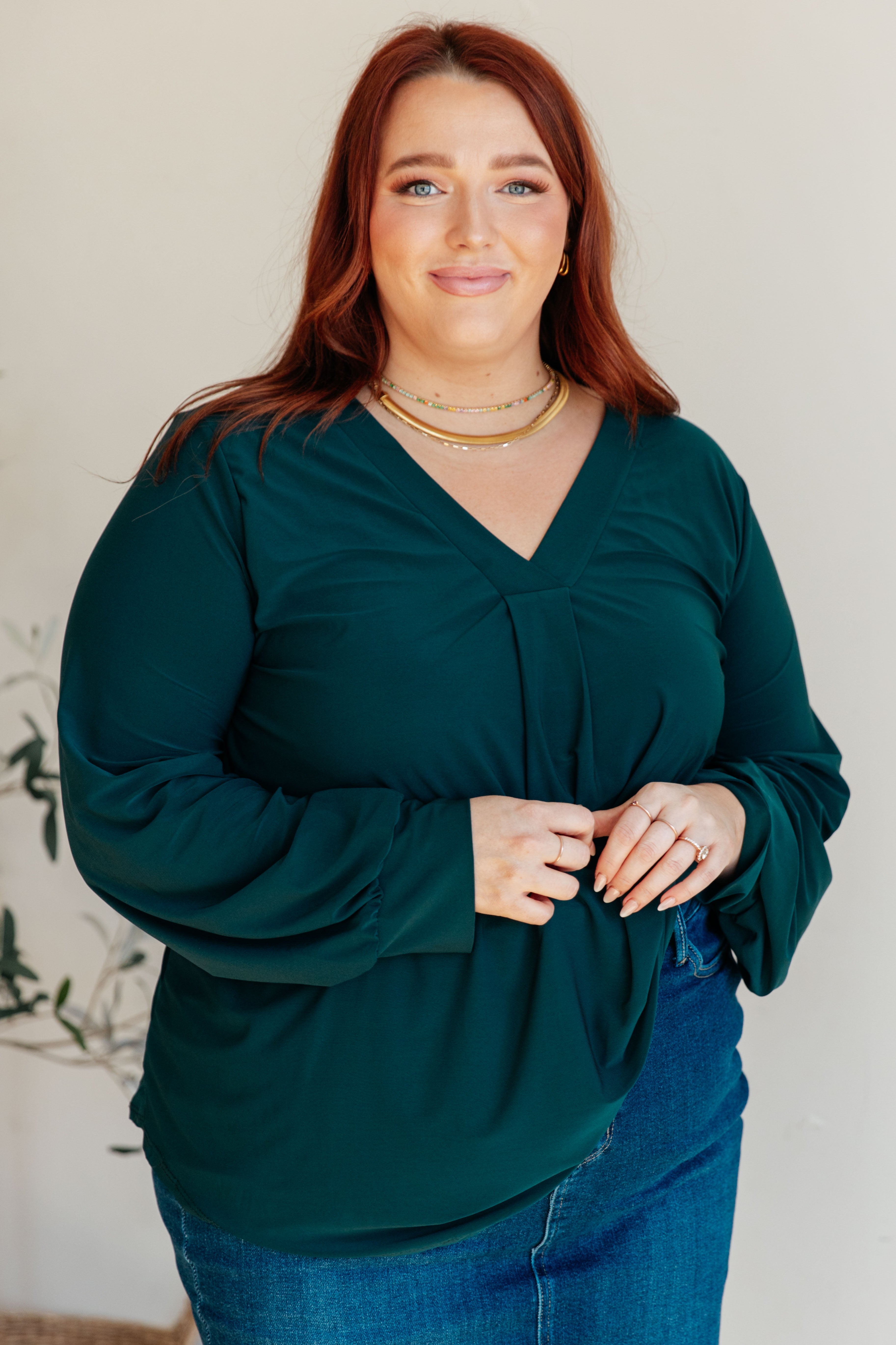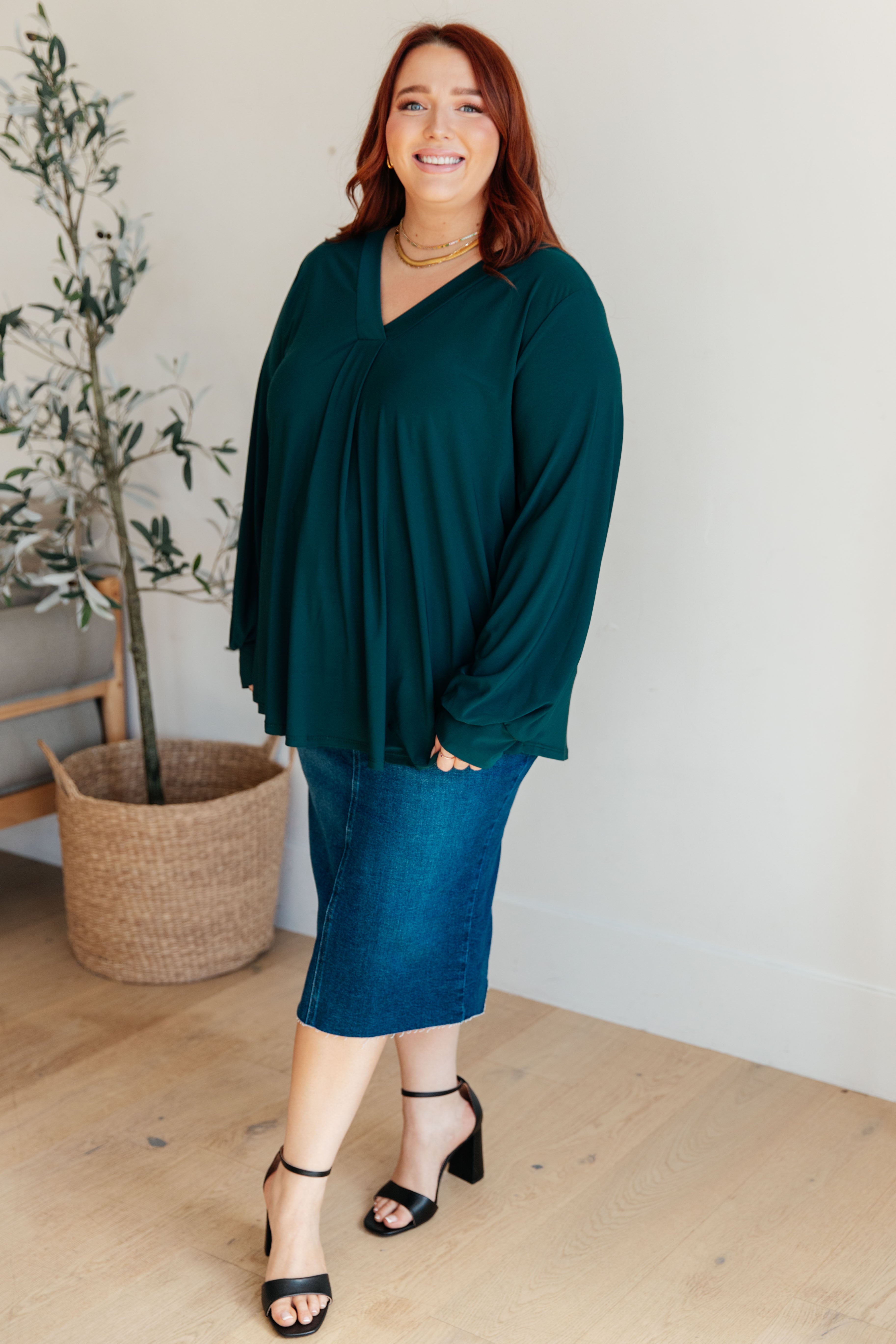 It's a little bit funny, the feeling inside when you wear the This is Your Song Balloon Sleeve Top! Made with cooling, wrinkle-resistant fabric, this V-neck top features a pleated center and balloon sleeves for a stylish twist. With a comfortable, high-stretch fit, this top gives you the freedom to move while looking effortlessly chic. It may be quite simple (now that we're done) to add this to your wardrobe!