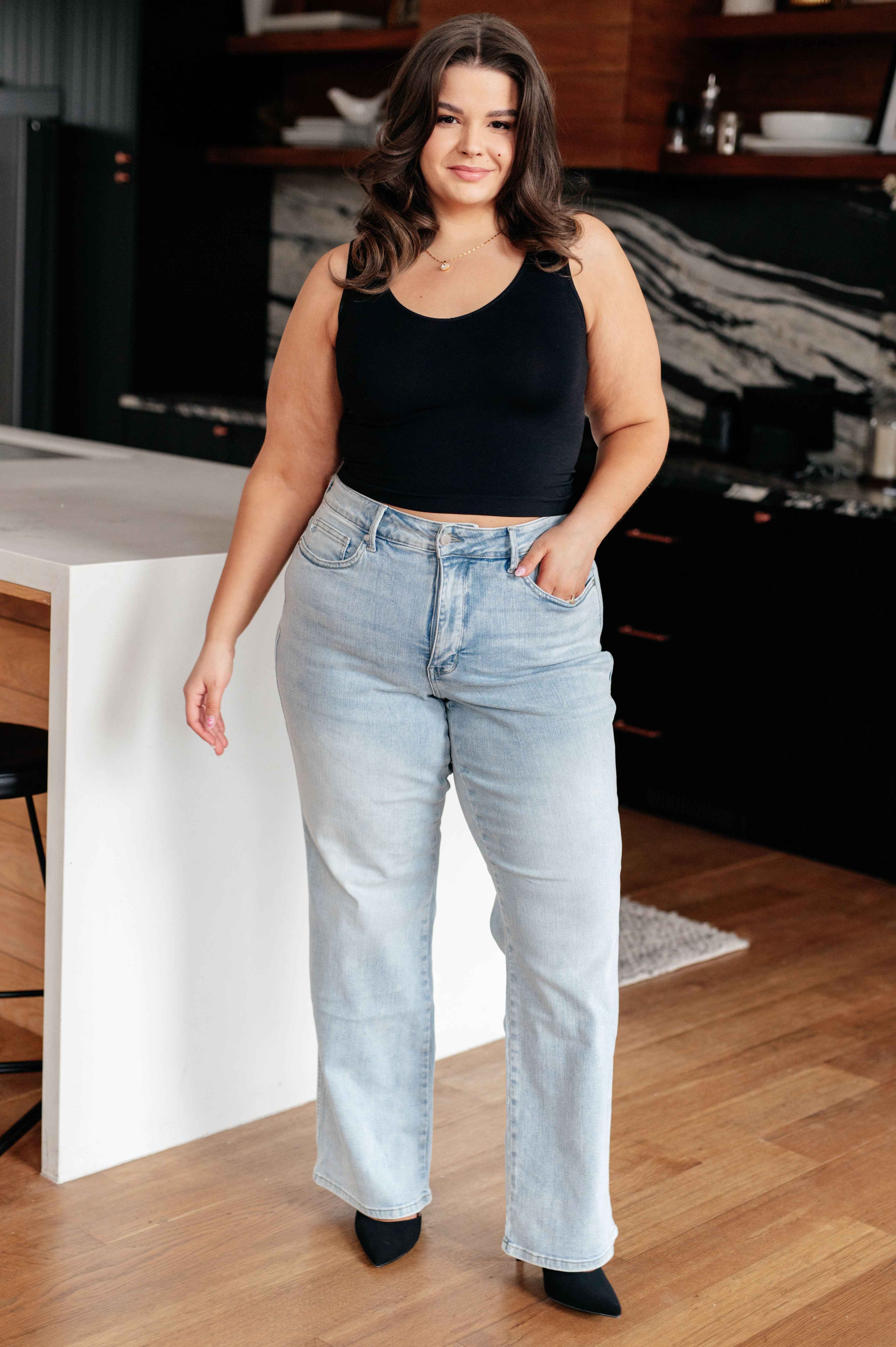 Elevate your denim game with Brooke High Rise Jeans from Judy Blue. These vintage wash jeans feature tummy control technology for a flattering fit, while the non-distressed straight leg adds a touch of sophistication. Rock your curves and conquer the day in these high rise jeans.