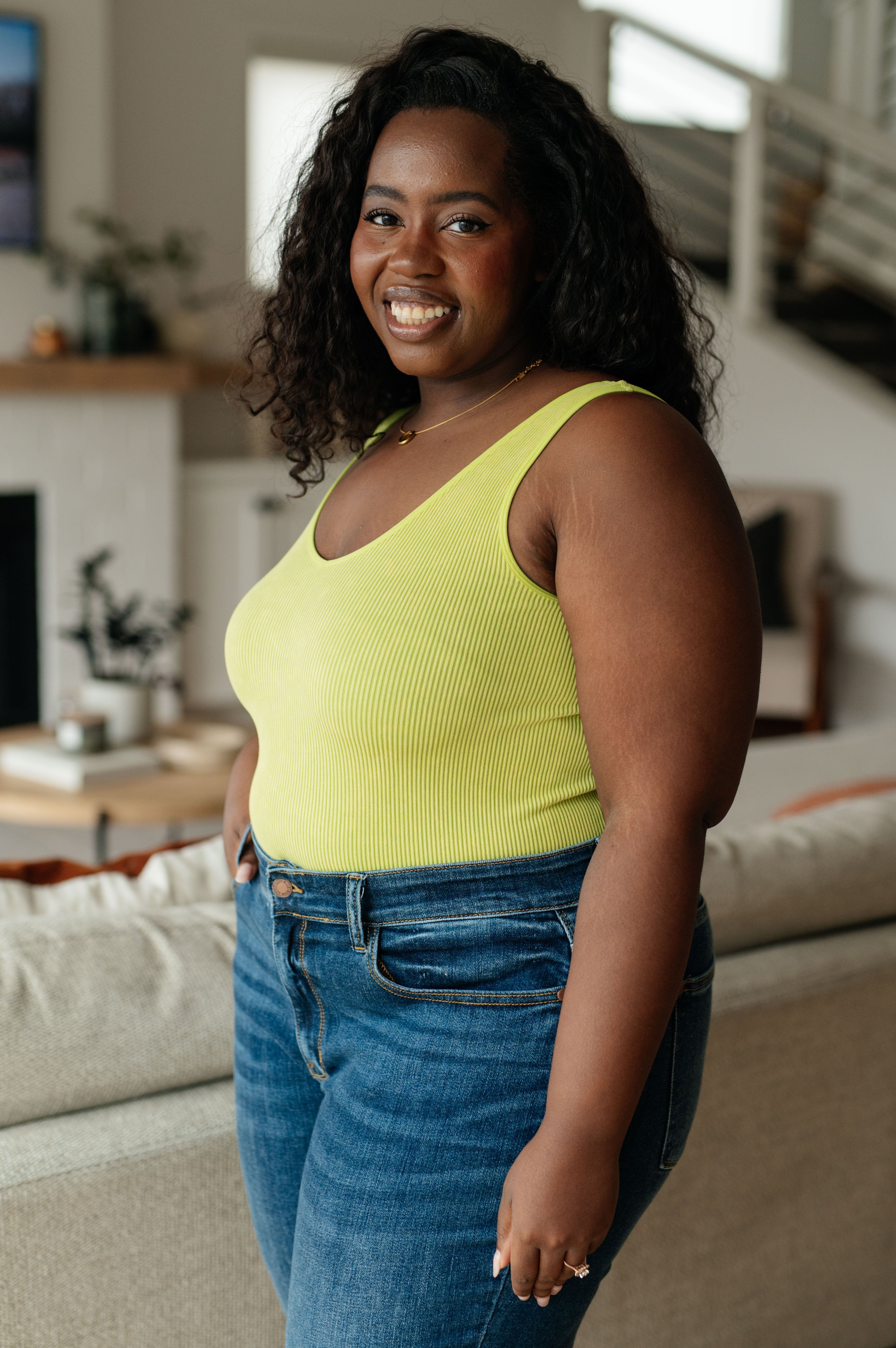 Fundamentals Ribbed Seamless Reversible Tank in Green - PLUS is backordered and will ship as soon as it is back in stock.