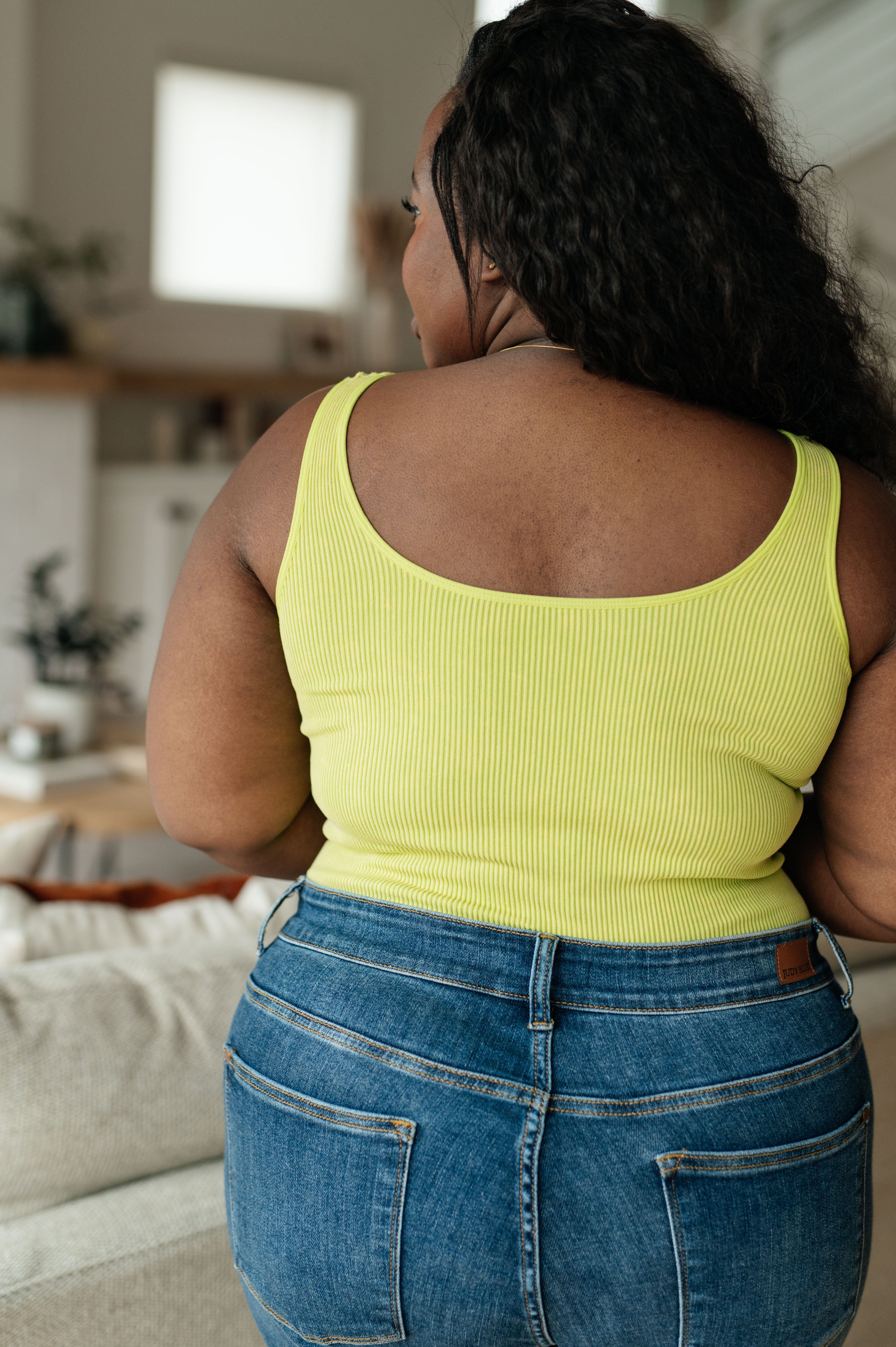 This tank is the perfect combination of function and fashion. Crafted from ribbed fabric with a seamless finish, it offers a flattering, cropped fit that can be customized with your choice of v-neck or scoop neck. Plus, its mineral wash makes it a true stand-out piece.