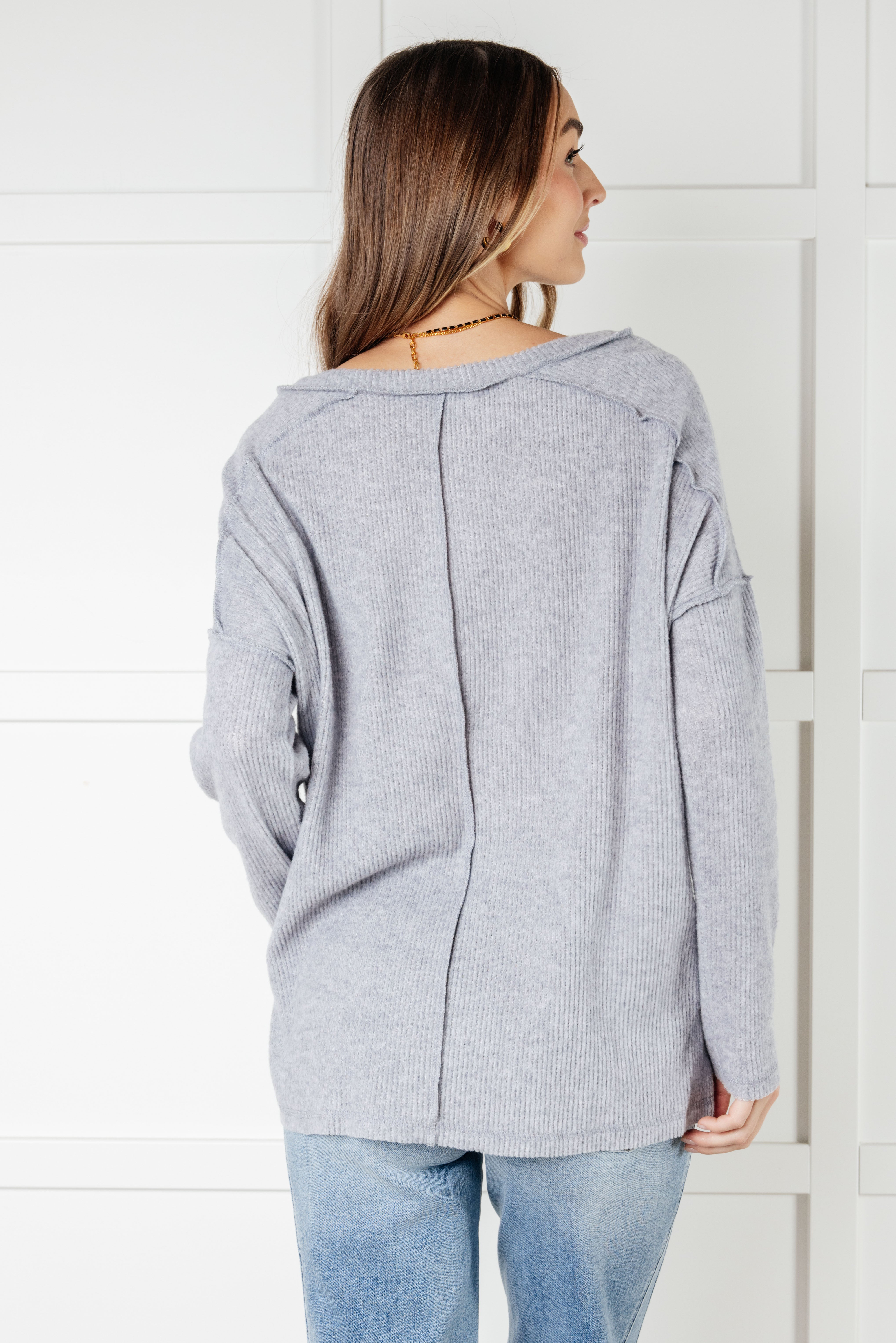 Get ready to cuddle up in our Basically Freezing Brushed Hacci Top! Its brushed Hacci fabric will keep you cozy and the ribbed design adds a touch of texture. The V-neckline and drop shoulder provide a relaxed fit, while the stepped high low hem and exposed seam details add a unique touch. Perfect for staying warm on chilly days!