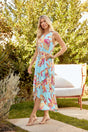 High-Low Ruffle Edge Maxi Dress in Aqua/Peach