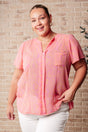 ¡Atrae todas las miradas con la blusa de escote chal Let Me See You Do It! Esta blusa tejida presenta un exclusivo escote chal, bolsillos de parche y mangas fruncidas para un estilo aún más elegante. El bajo asimétrico le da un toque de estilo, mientras que la tela transparente te mantendrá fresca sin esfuerzo. Perfecta para añadir un toque de encanto divertido a cualquier look.