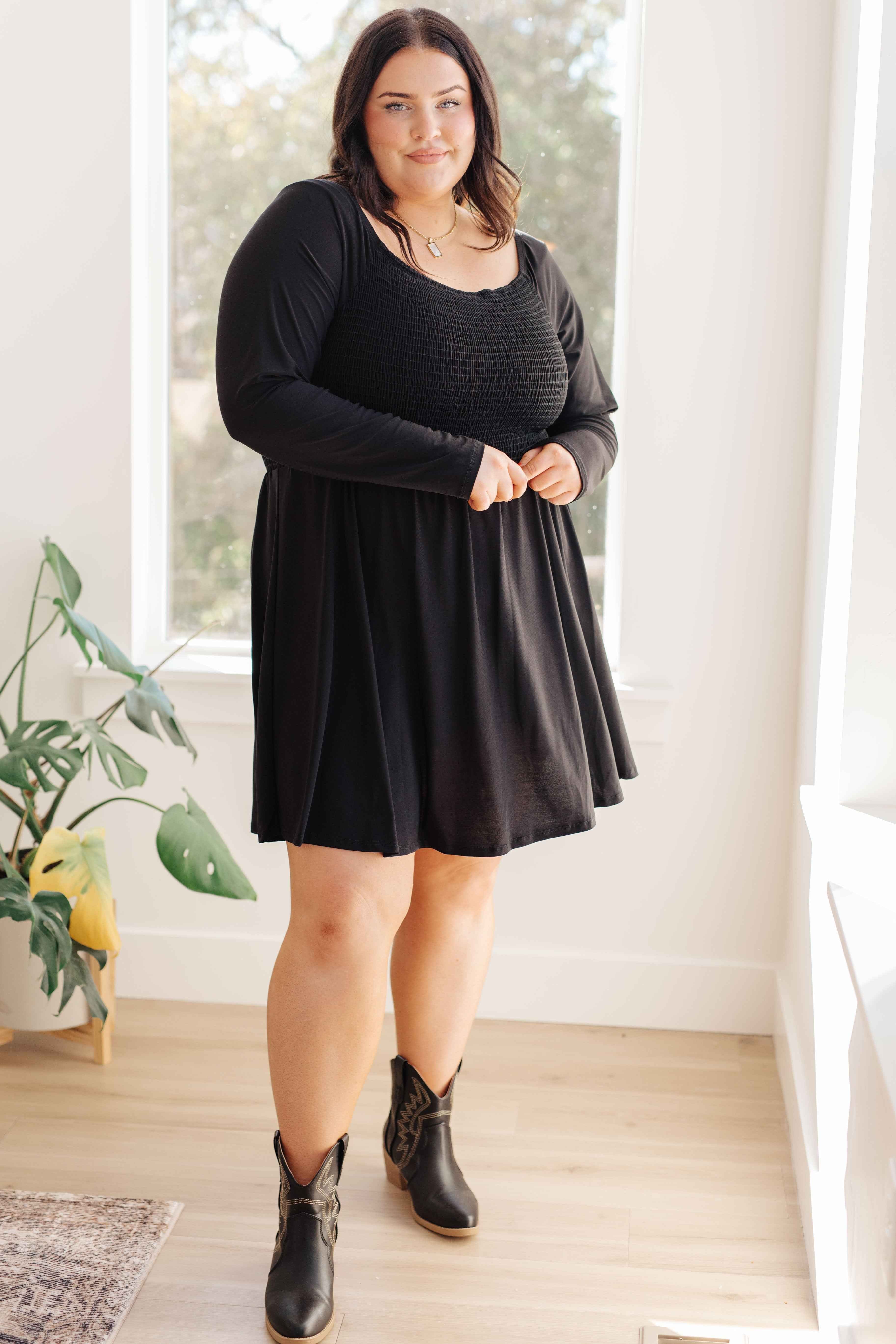 Luce sofisticada con el vestido falda-pantalón de manga larga In the Thick of It. Con escote cuadrado redondeado, realza una silueta femenina y está confeccionado en un punto Bulgari muy fácil de llevar. El corpiño elástico fruncido define tu torso y el forro interior tipo short con bolsillos laterales le da un toque de lujo. Luce una impresión con este vestido atemporal.