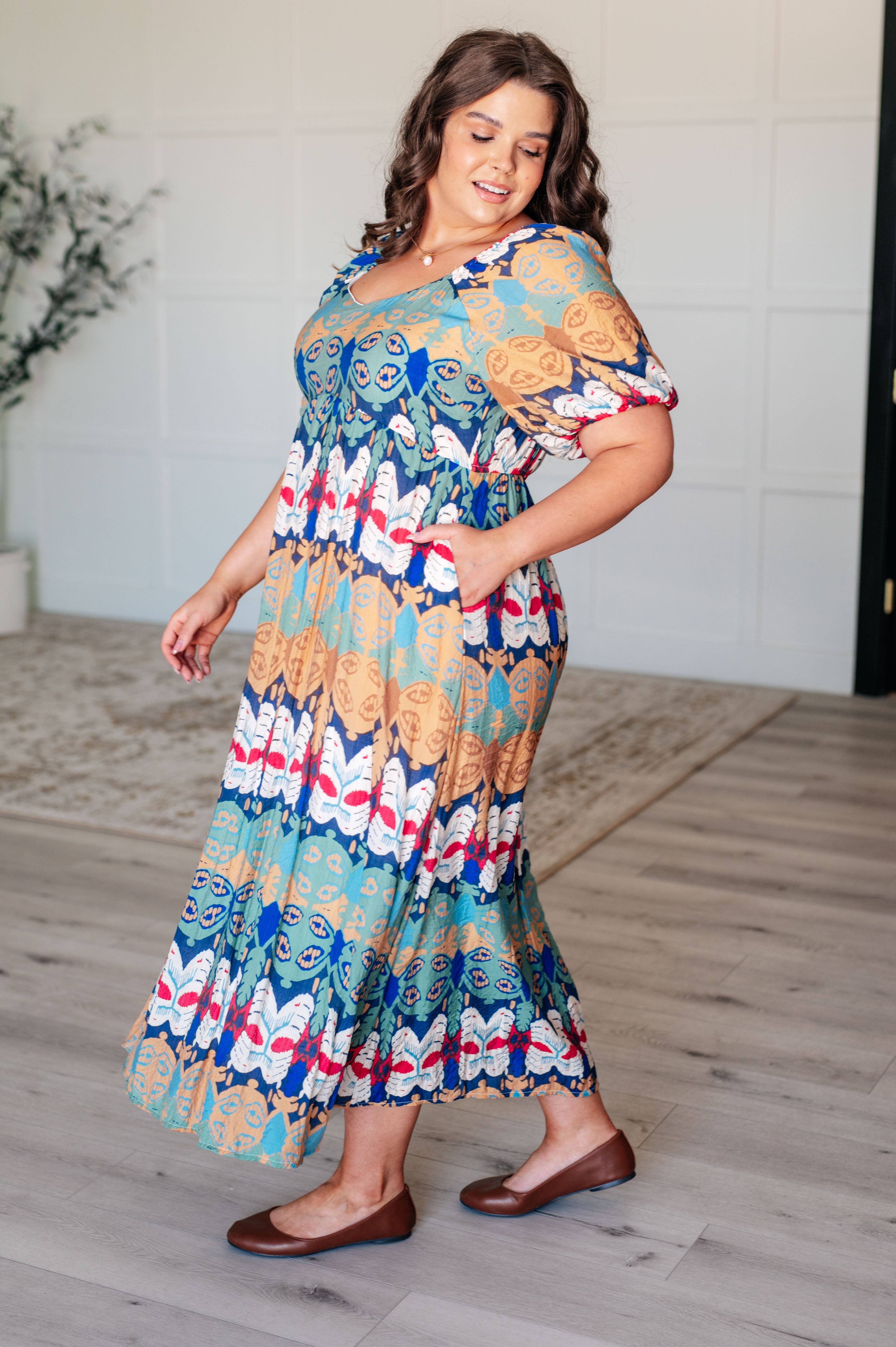Adéntrate en un mundo perfecto con nuestro vestido Shaping Reality con cuello en V y mangas globo, un testimonio de estilo atemporal y elegancia moderna. Confeccionado en lujoso tejido arrugado, este vestido luce una textura y un estampado únicos que realzan su encanto. El escote en V es el punto focal más favorecedor, dirigiendo la mirada hacia el escote con sutil gracia.