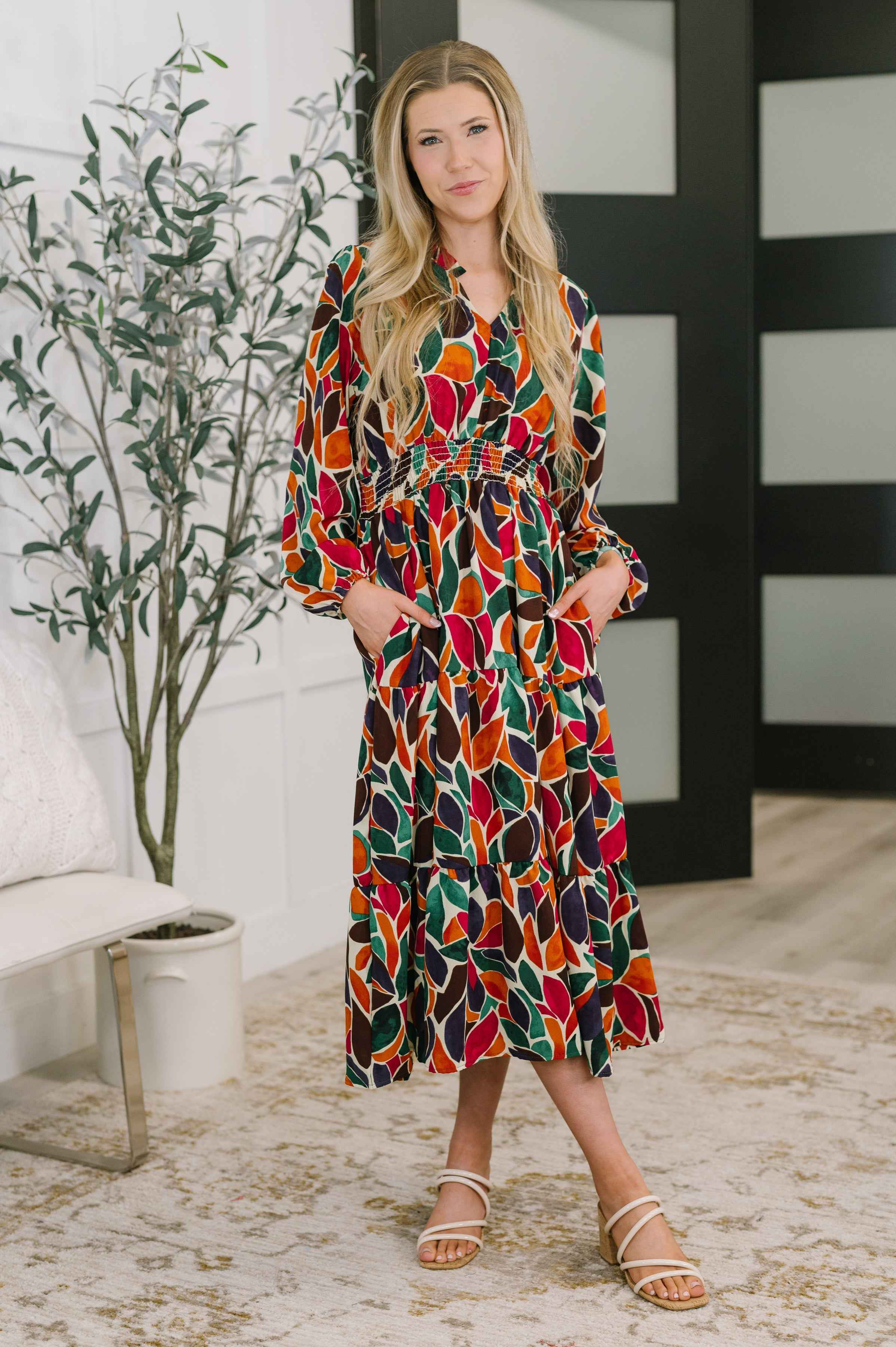The Leafing it All Behind Long Sleeve Tiered Dress is your ticket to carefree, head-turning style. This woven beauty features voluminous balloon sleeves and gracefully gathered tiers that dance with every step. A charming V-neckline adorned with ruffled details adds feminine flair, while the smocked elastic waistband creates a flattering fit. Cased elastic cuffs keep sleeves perfectly in place, and functional side pockets are the cherry on top. Effortless, playful, and absolutely irresistible.