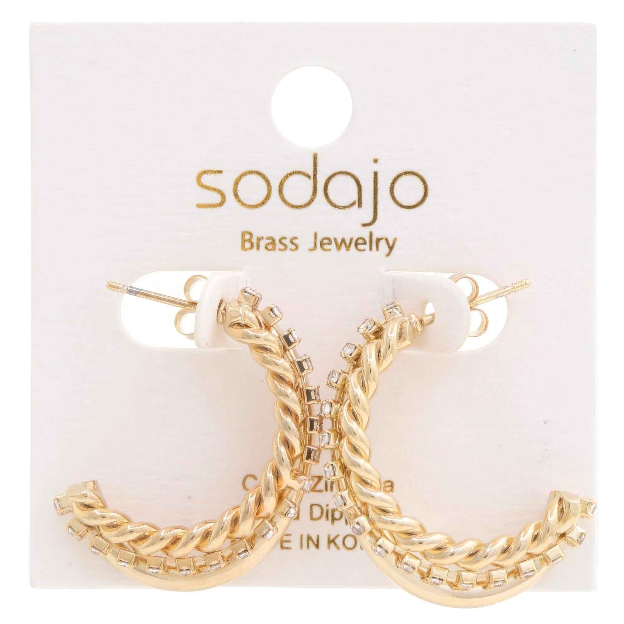 Rope Rhinestone Open Hoop Gold Dipped Earring