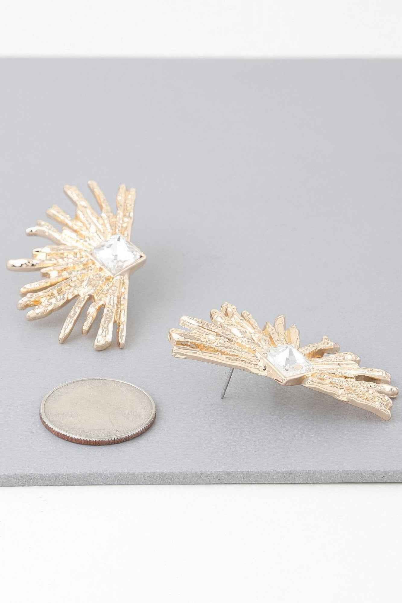 Diamond Rhinestone Flare Earrings - Gold clear está agotado y se enviará tan pronto como vuelva a estar disponible.