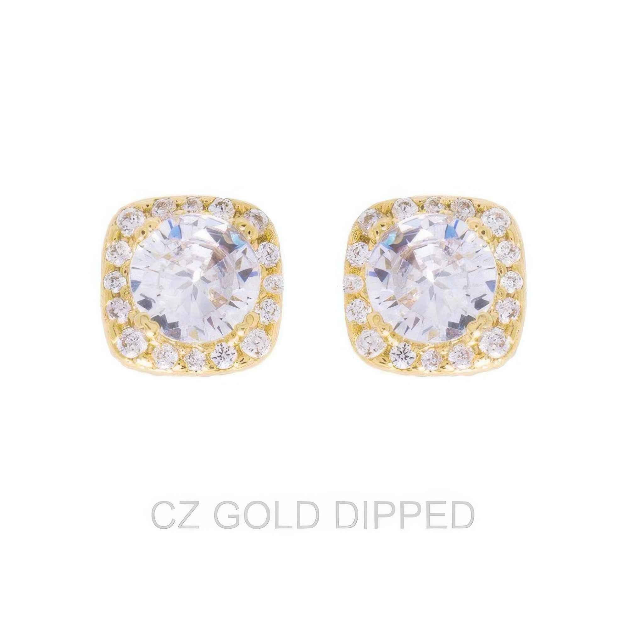 Gold Dipped Cz Square Halo Stud Earrings - GoldClear.Gcr está agotado y se enviará tan pronto como vuelva a estar disponible.
