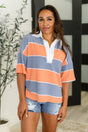 Top casual con cuello Cloudbound en naranja y denim - Pequeño está agotado y se enviará tan pronto como vuelva a estar disponible.
