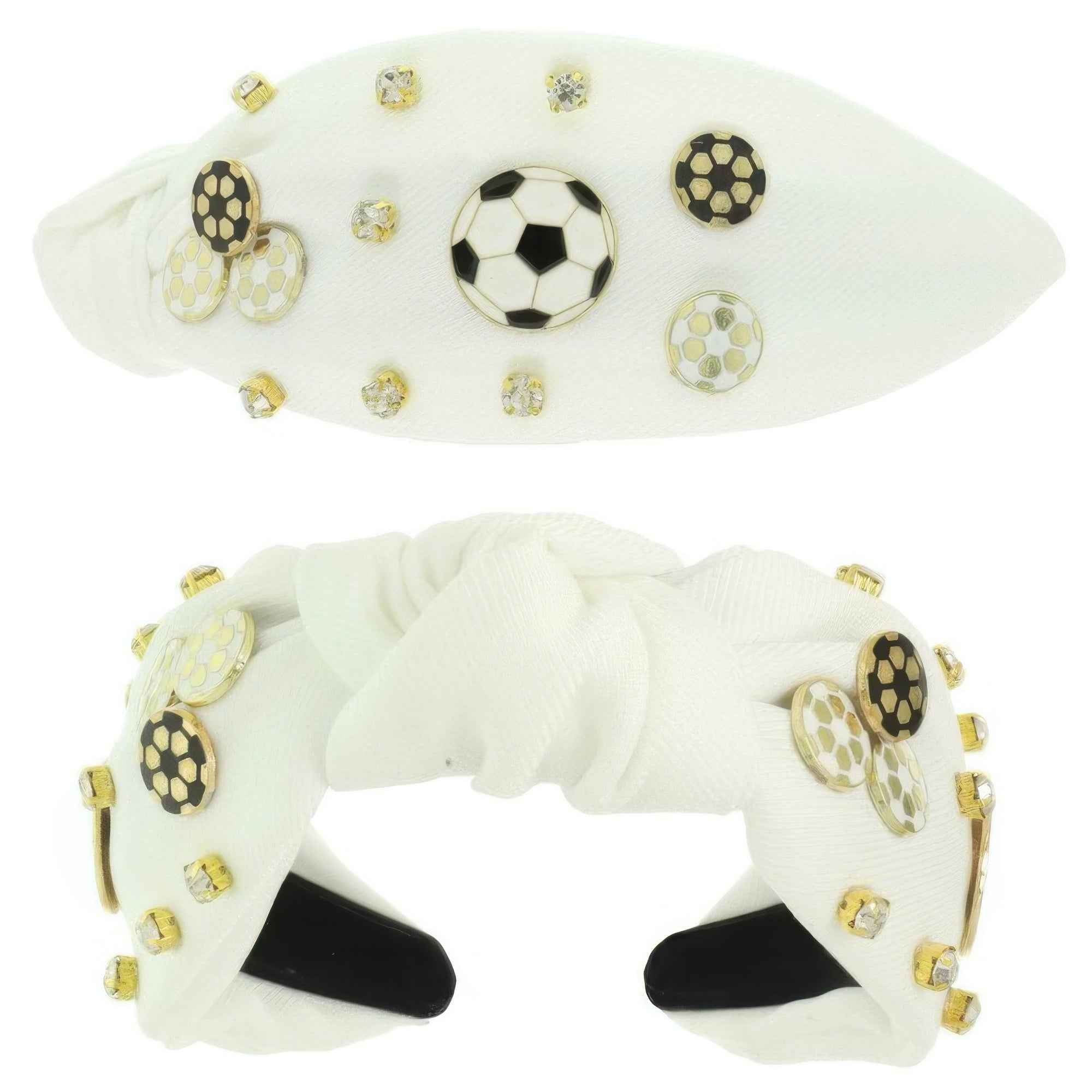 Celebrate the thrill of the match with the Game Day Soccer Theme Top Knotted Headband. Featuring football-shaped charms and sparkling crystal details, this accessory brings both team spirit and everyday style to your look. Its soft weave and breathable structure provide comfort during long days, whether you’re on the sidelines, practicing, or showing support in the stands. The textured front twist adds an eye-catching accent, while the stretch fit ensures it stays secure. A versatile piece, this headband transitions seamlessly from sporty moments to casual wear.