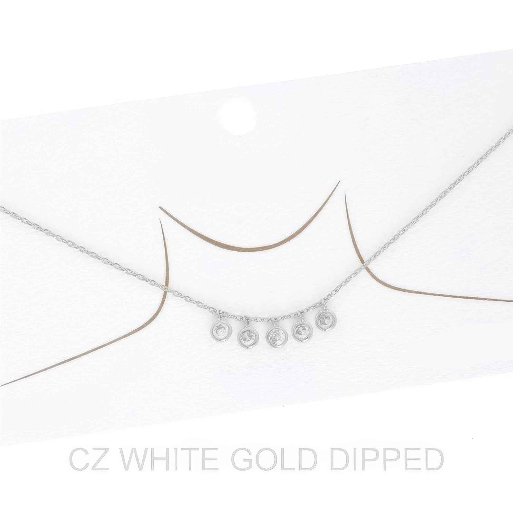 Modern and chic, this multi-charm necklace adds versatile sparkle to your look. Featuring multiple disc charms accented with cubic zirconia stones, it layers beautifully for a playful yet refined finish. Gold dipped in white and yellow plating, the adjustable chain makes it easy to style at different lengths. A stylish accessory for both everyday wear and special outings.