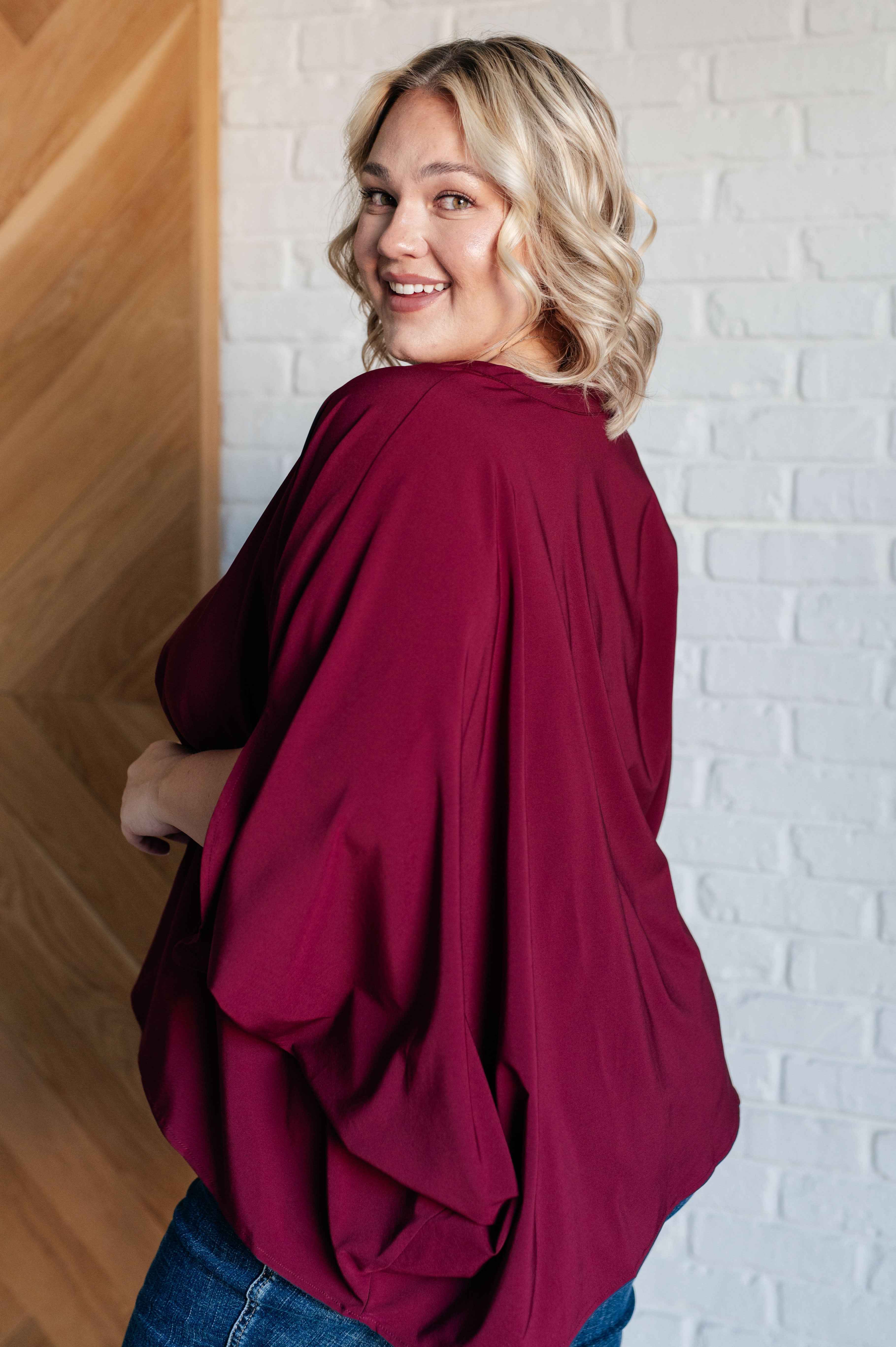 Elevate your outfit game with our Universal Philosophy Blouse! Crafted from a lightweight, woven fabric and featuring a comfy "Gabby" V-Neckline, a poncho-style silhouette with batwing sleeves, and an oversized fit - this blouse is an absolute dream for those days when you want to look stylish and feel comfy at the same time!