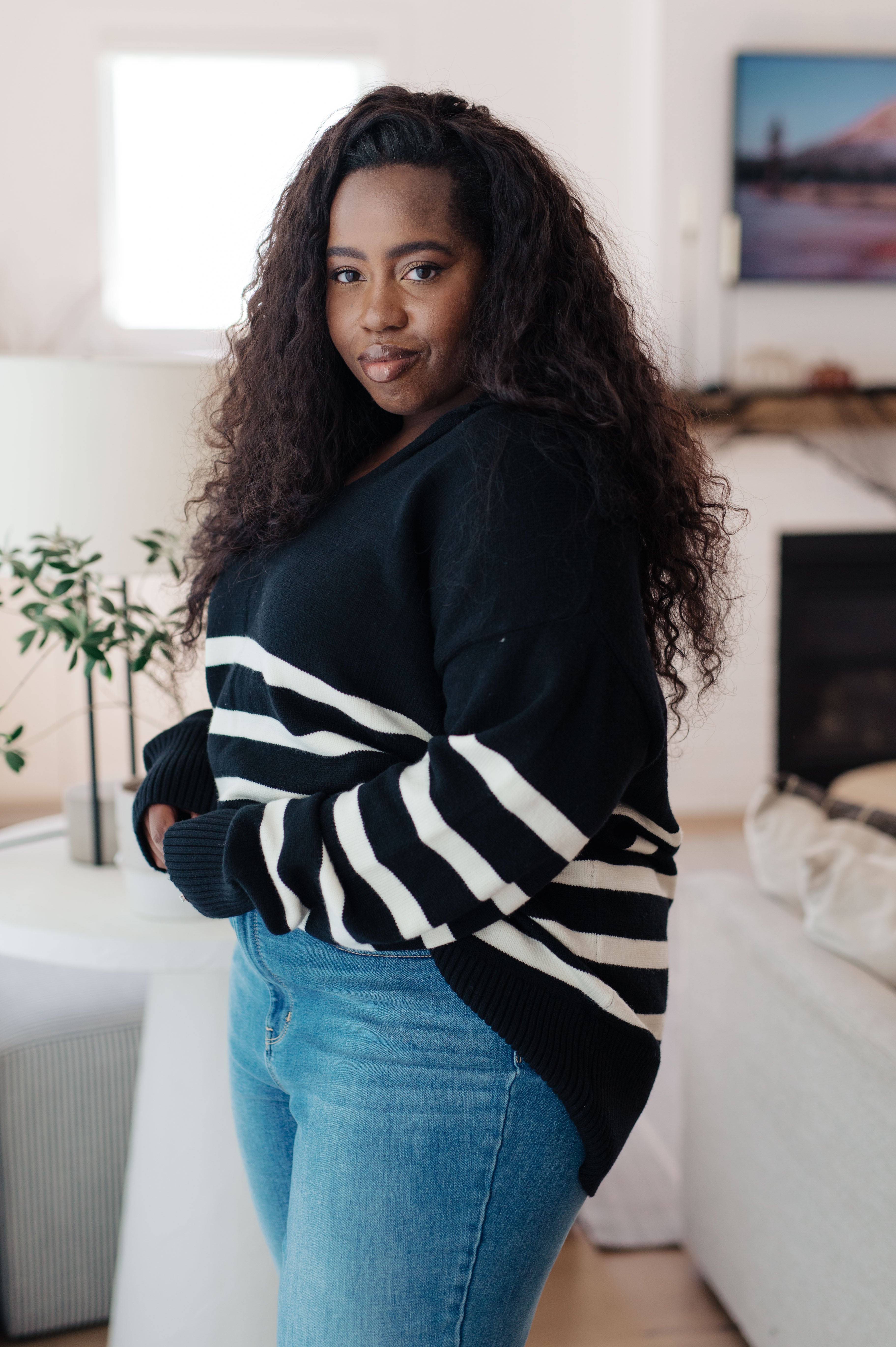 Este suéter de rayas de From Here On Out le da un toque atrevido a cualquier armario. Presenta un tejido de punto suave y sofisticado, cuello en V y mangas abullonadas con un corte holgado. Disfruta de la suavidad de su tejido y la elegancia de sus rayas llamativas.